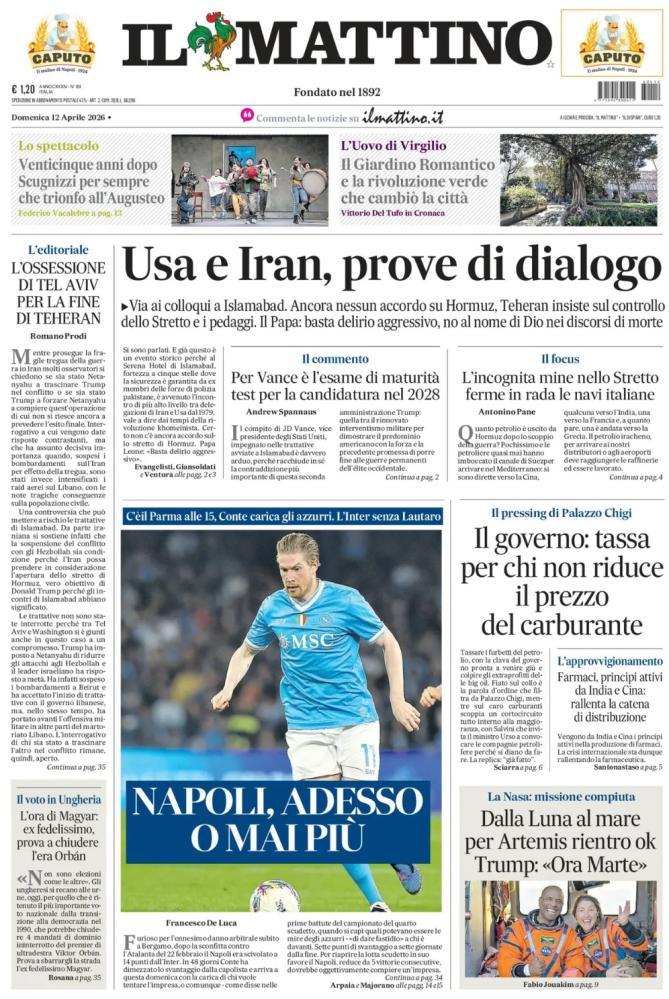Il Mattino apre con la lotta scudetto: "Napoli, adesso o mai più"