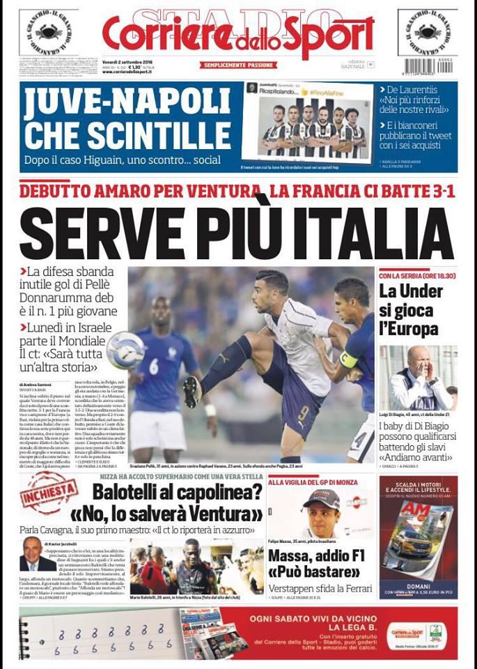 "Juve-Napoli, che scintille", propone il Corriere dello Sport che scrive: "Dopo il caso Higuain, uno scontro....social".