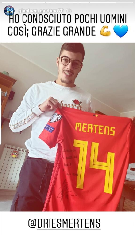 Maglia autografata del Belgio ed un grande sorriso per Gianluca Gaetano. Il giovane talento azzurro ha postato su Instagram una foto che lo ritrae con la maglia di Dries Mertens del Belgio ed ha voluto ringraziare l'amico per il regalo: "Ho conosciuto pochi uomini così. Grazie grande!"