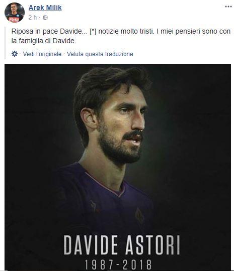 FOTO - Milik, un pensiero per Astori: "Riposa in pace, è una notizia molto triste"