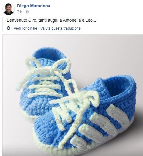 E' nato Ciro Messi. Il terzo figlio dell'attaccante del Barcellona è nato oggi, e cosi sono tanti i personaggi dello sport che si sono congratulati con l'argentino. Uno di questi è proprio un argentino "doc" come Diego Maradona che, attraverso Facebook, ha fatto i suoi auguri: "Benvenuto Ciro! Tanti auguri ad Antonella e Leo".