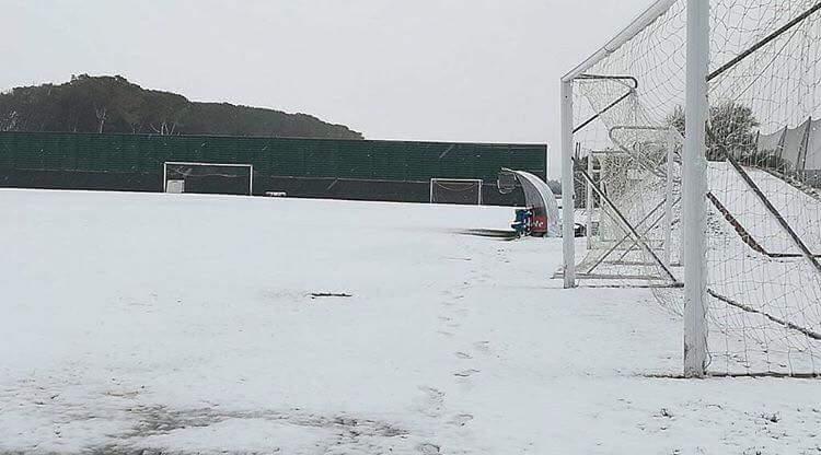 Ondata di gelo sull'Italia e sulla Campania. Nella notte è caduta neve anche nel napoletano così come dimostra la foto postata dal profilo Instagram della Ssc Napoli del centro sportivo di Castel Volturno.