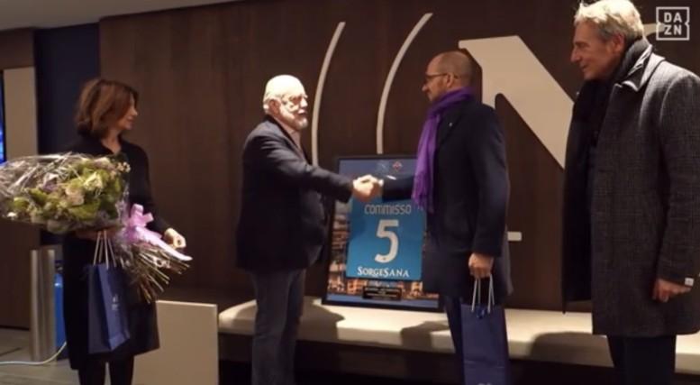 Momento carico di emozione al Maradona prima del fischio d’inizio di Napoli-Fiorentina. Il presidente del Napoli, Aurelio De Laurentiis, ha voluto rendere omaggio alla famiglia Commisso con un gesto simbolico e toccante.