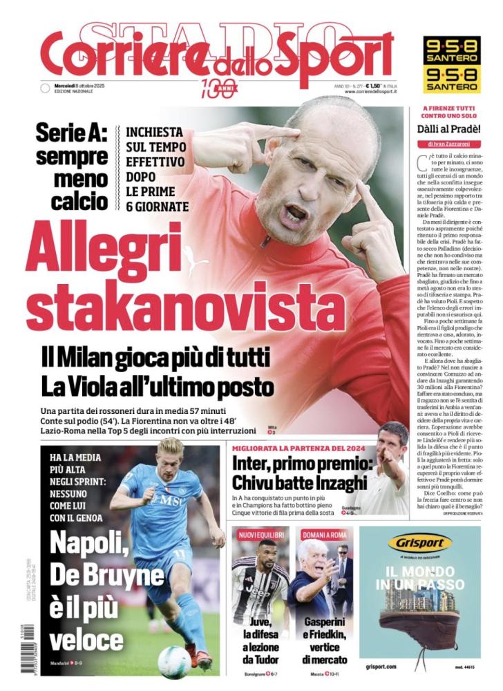 "Napoli, De Bruyne è il più veloce". Ecco quanto si legge sulla prima pagina del Corriere dello Sport oggi in edicola, che dedica ampio spazio al centrocampista: 'Il belga domina le statistiche negli sprint: nessuno come lui contro il Genoa' sottolinea il quotidiano. Kevin De Bruyne non è soltanto il leader tecnico della squadra di Antonio Conte, ma anche un instancabile motore di energia.