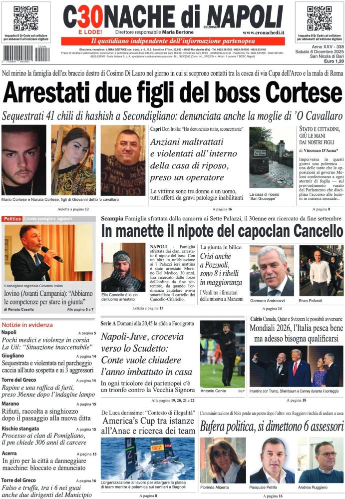 "Napoli-Juve, crocevia verso lo Scudetto. Conte vuole chiudere l'anno imbattuto in casa", titola così quest'oggi Cronache di Napoli in prima pagina. Domani alle 20.45 il Napoli affronterà la Juventus nel big match della 14esima giornata di Serie A. Sfida da ex in panchina tra Antonio Conte e Luciano Spalletti.