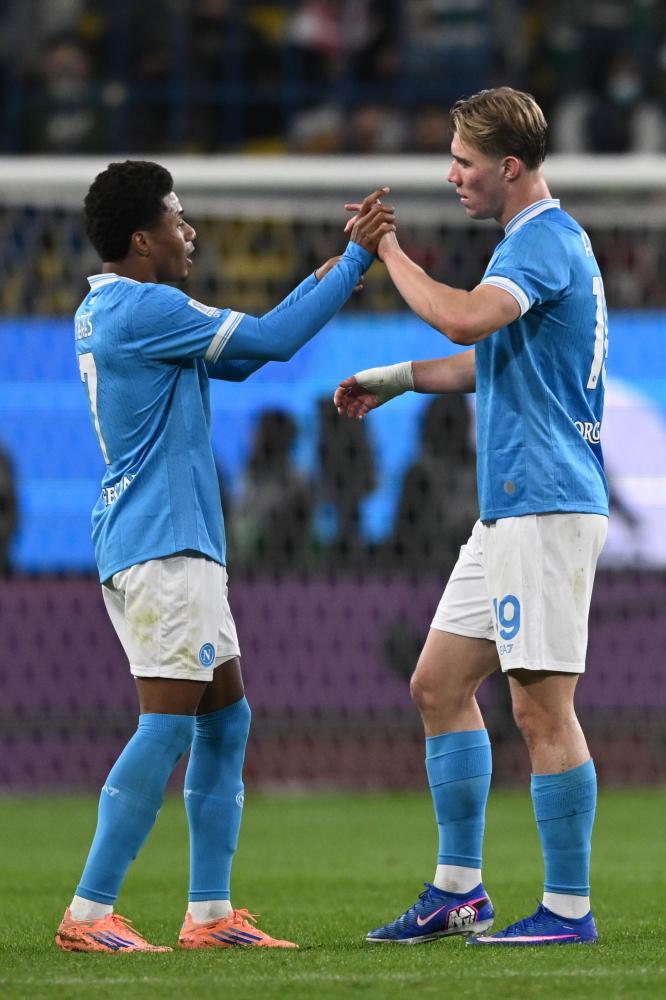 Il Napoli reagisce alla grande all'ultimo periodo difficile, vincendo 2-0 a Riad contro il Milan nel segno di David Neres e Rasmus Hojlund. La squadra di Antonio Conte vola in finale di Supercoppa 2025 dove avrà la possibilità di giocarsi il trofeo sfidando la vincente di Bologna-Inter. Dalle esultanze degli azzurri ai piccoli istanti di partita catturati al King Saud University Stadium: rivivi il meglio della partita con la nostra fotogallery di seguito.