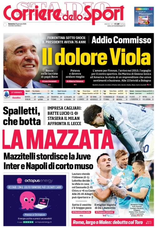 In taglio alto ampio spazio alla scomparsa del presidente della Fiorentina Rocco Commisso: "Il dolore Viola".