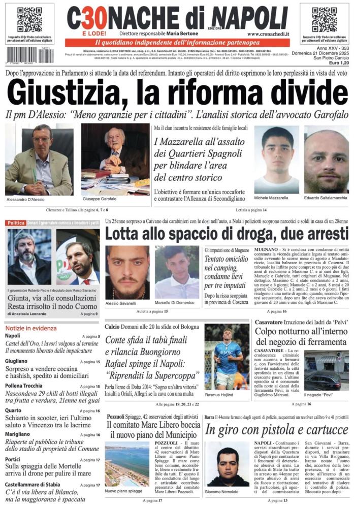Cronache di Napoli: "Conte sfida il tabù Bologna e rilancia Buongiorno"