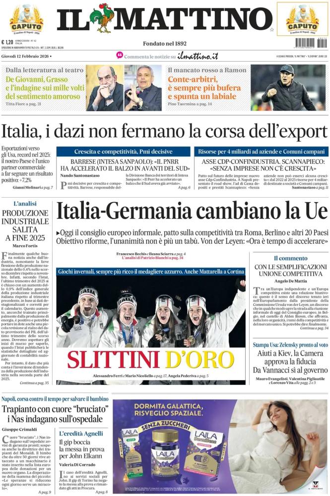 Nell'edizione di oggi, Il Mattino dedica spazio in prima pagina al labiale di Conte contro Manganiello dopo il rosso non dato a Ramon in Napoli-Como: "Conte-arbitri, è sempre più bufera e spunta un labiale". Di seguito la prima pagina integrale.