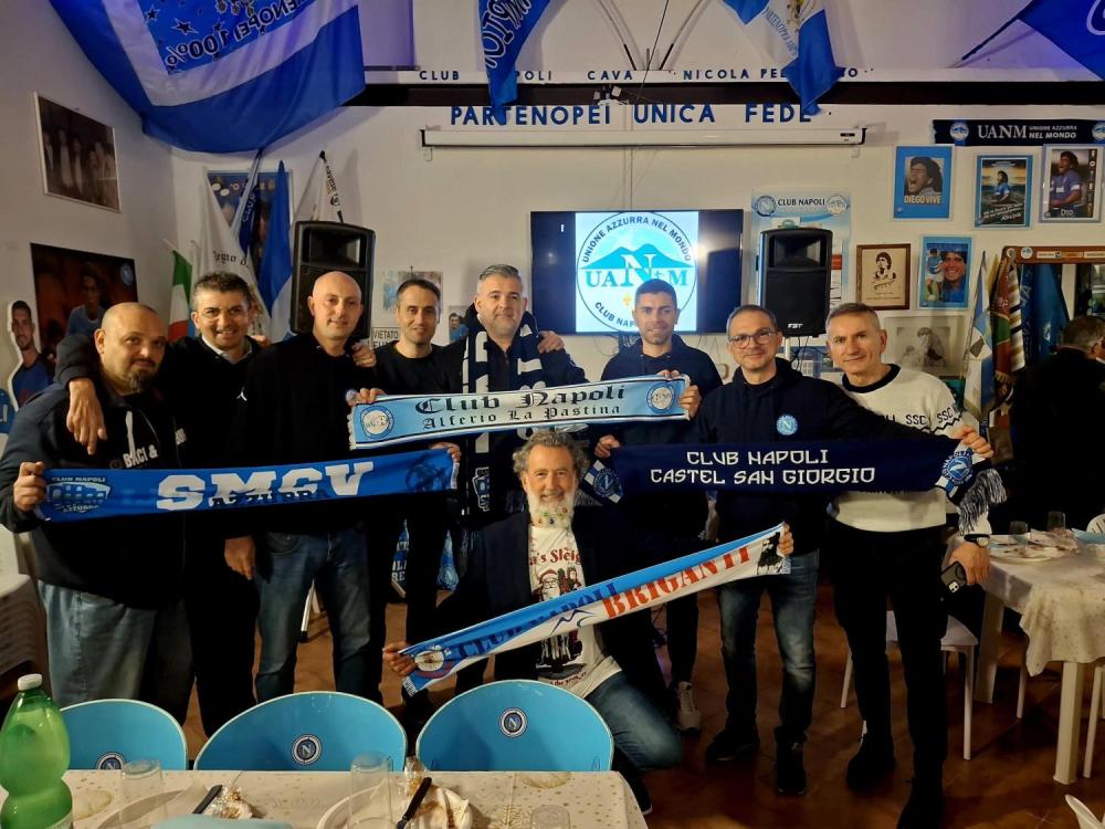 A Cava de' Tirreni si è tenuto il raduno natalizio dell'associazione UANM (Unione Azzurra Nel Mondo) a cui hanno preso parte circa 30 Club Napoli provenienti non solo da ogni parte della Campania, ma dell'Italia! Per citarne alcuni, dalla Sardegna il Club Napoli Cagliari, direttamente dalla Puglia il Club Napoli Brindisi o ancora dalla Lombardia il Club Napoli Brescia, senza tralasciare i locali da Castel San Giorgio o Sarno ad esempio, come testimoniano i nostri scatti.