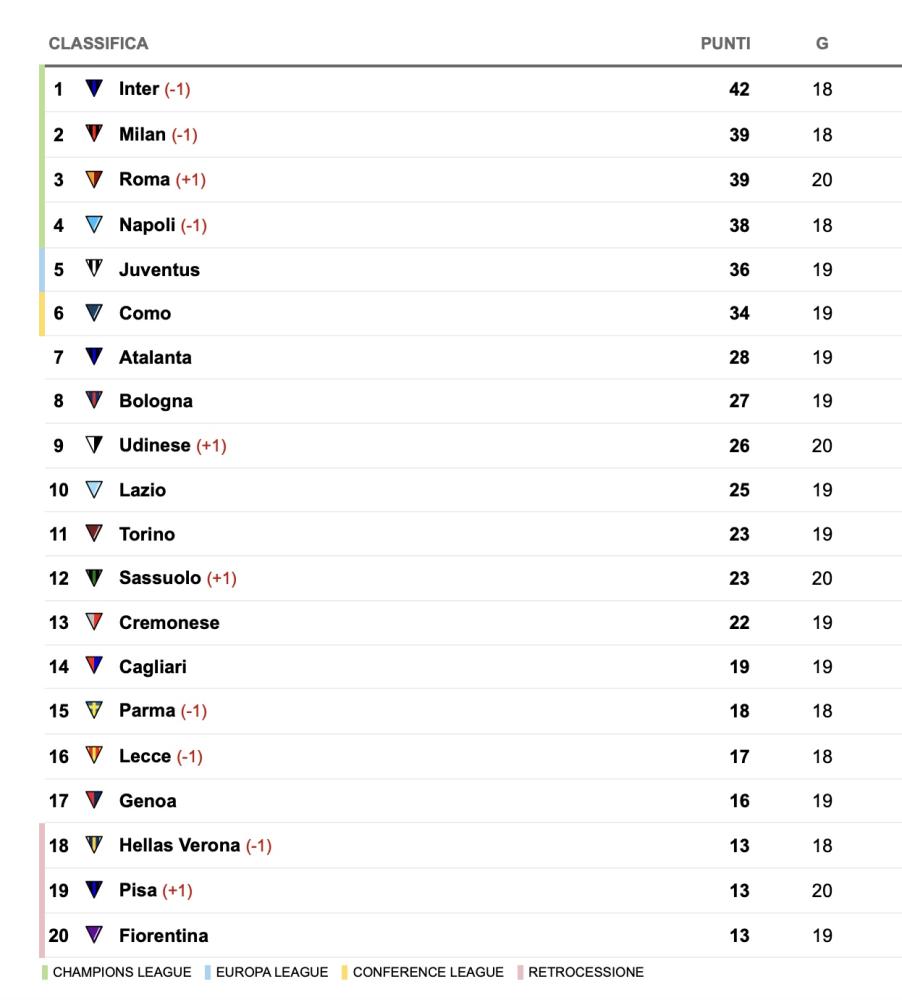 Inter 42 punti (18 partite giocate)