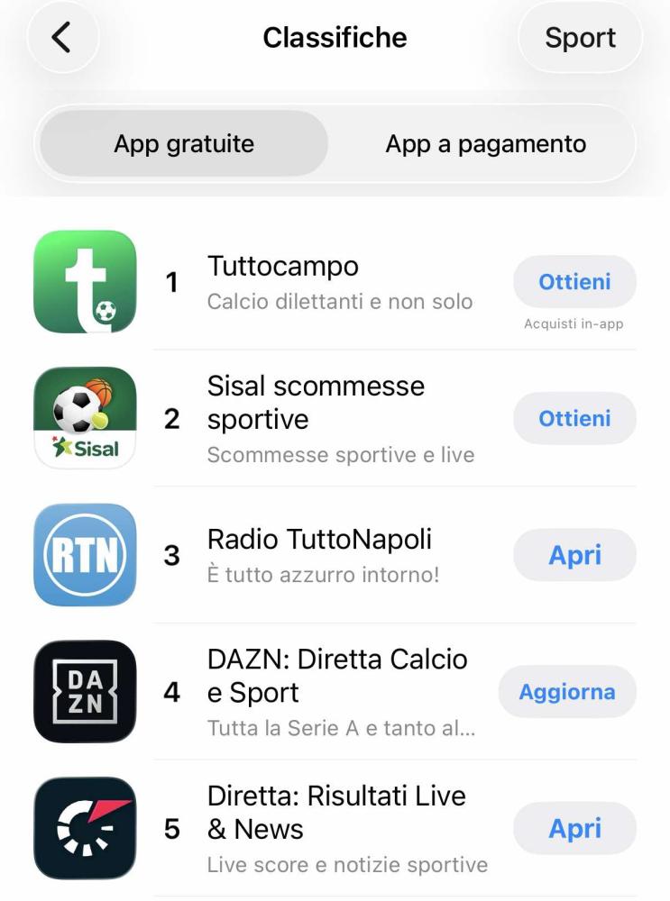 Lunedì è nata Radio Tutto Napoli ed è stato un inizio straordinario. Fin dalle prime ore, in numerosi avete seguito con interesse la nostra nuova visual radio. Dopo il quinto posto ottenuto ieri, attualmente risulta la terza applicazione sportiva più scaricata sull’Apple Store. La ricca programmazione della prima radio tutta azzurra, iniziata alle 8 e conclusa alle 19, ha ottenuto sin da subito un significativo riscontro sancendo un debutto di grande successo.