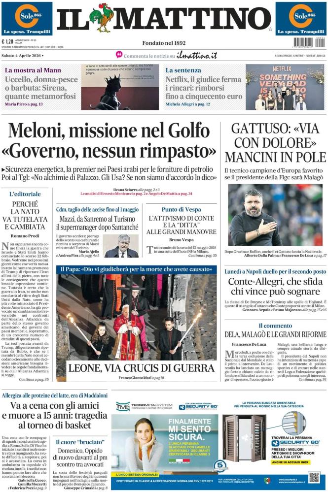 Apertura del Mattino dedicata a temi politici, spazio laterale invece con un occho su lunedi dove a Napoli ci sarà il duello per il secondo posto Conte-Allegri, chi vince può sognare!