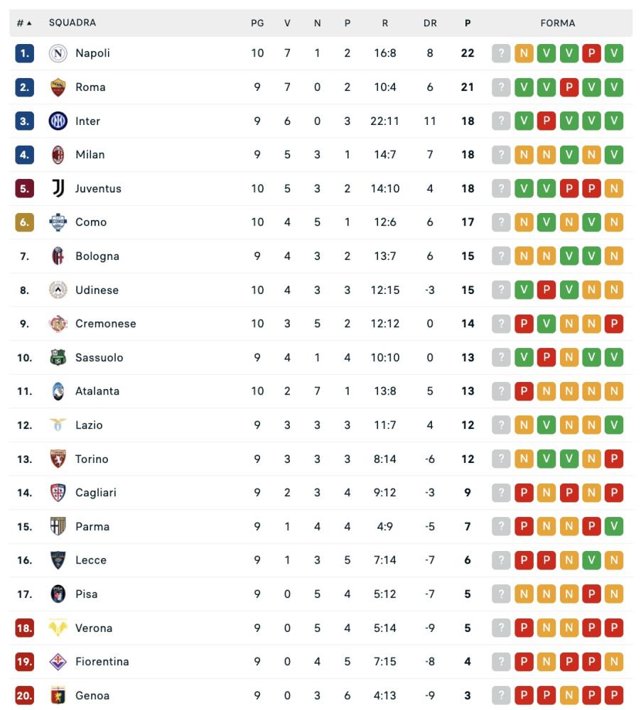 Serie A, classifica: la Juve vince e accorcia sul Napoli, ora a +4